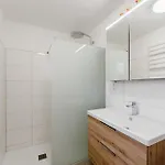 Bathroom facilities also include a separate toilet and a shower. There are hairdryers, towels, and bathrobes for guests' comfort.